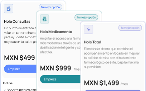 Medicamentos innovadores + acompañamiento continuo. Regístrate de forma segura con tu teléfono y comienza a disfrutar de los beneficios. ¡Más pronto de lo que imaginas, empezarás a ver resultados!